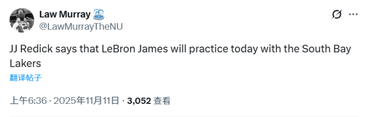 早在5天前,名记Shams就在节目中爆料,称詹姆斯不会随湖人前往客场之旅,而是留在洛杉矶进行康复。当时Shams就提到了詹姆斯可能会下放发展联盟,与南湾湖人一起训练的消息。雷迪克不久前也提到了这种可能性,但表示球队尚未作出正式决定。如今,詹姆斯终于前往发展联盟,这也是一个积极的信号,代表他的复出已经进入倒计时。据悉,他最快会在11月19日主场对爵士复出。